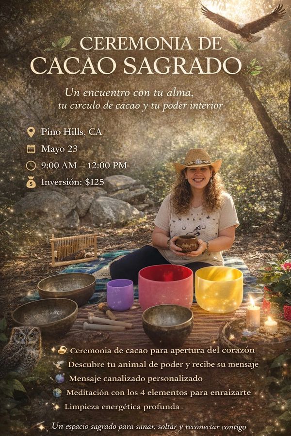 Taking the Cacao drink will open your heart to fully sumerge yourself in a sound bath with crystal singing bowls and drums. Come experience a journey to the center of thyself.
